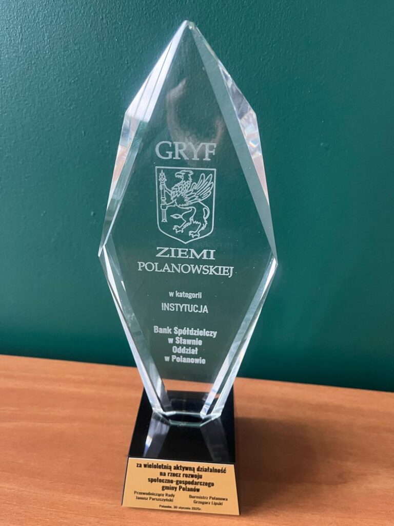 Nagrodę w dniu 17 lutego 2025r. z rąk Pana Burmistrza Polanowa Grzegorza Lipskiego odebrała Pani Dyrektor Oddziału w Polanowie Renata Bulwan-Zając.